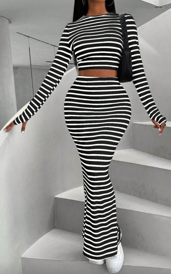 Cette robe rayée élégante pour femme combine style et confort avec sa coupe ajustée et ses manches longues. Parfaite pour une allure sophistiquée lors de diverses occasions, cette robe est un incontournable de votre garde-robe. Idéale pour des sorties en ville ou des soirées entre amis, elle vous assure une allure chic et tendance.