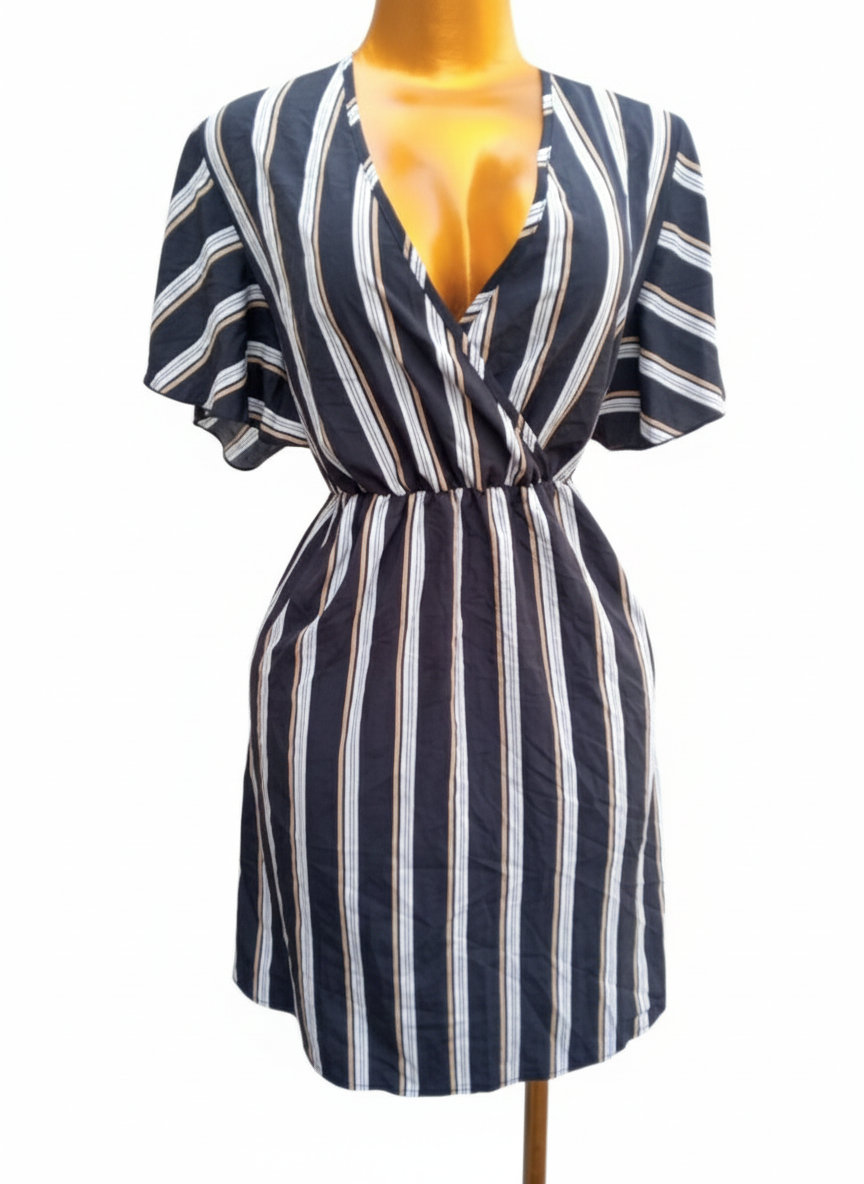 Cette robe rayée élégante est parfaite pour une allure chic et décontractée. Conçue avec des matières légères, elle assure confort tout au long de la journée. Son design à rayures verticales allonge la silhouette, idéal pour les soirées d'été ou les sorties entre amis. Un choix incontournable pour renforcer votre garde-robe.