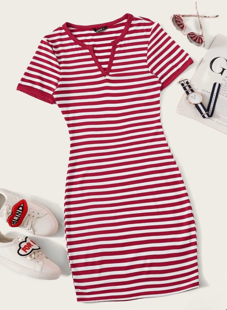 Élégante robe rayée rouge et blanche. Confortable et moderne, parfaite pour les sorties décontractées ou les balades en ville. Tissu doux et extensible pour une journée sans souci. Complétez votre look avec des baskets et des lunettes de soleil. Un must pour votre garde-robe estivale.