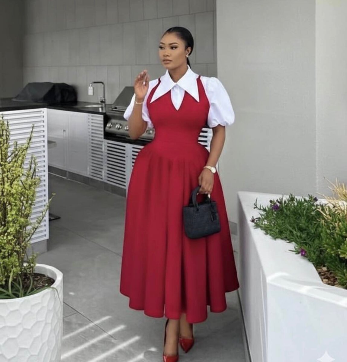 Découvrez cette élégante robe rouge mi-longue avec une chemise blanche ou noire. Parfaite pour les occasions spéciales ou une sortie élégante.