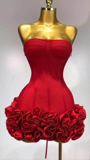 Robe rouge élégante et féminine, parfaite pour des occasions spéciales. Conçue avec un corsage ajusté et une jupe courte à volants, cette robe ajoutera une touche d'élégance à votre look.