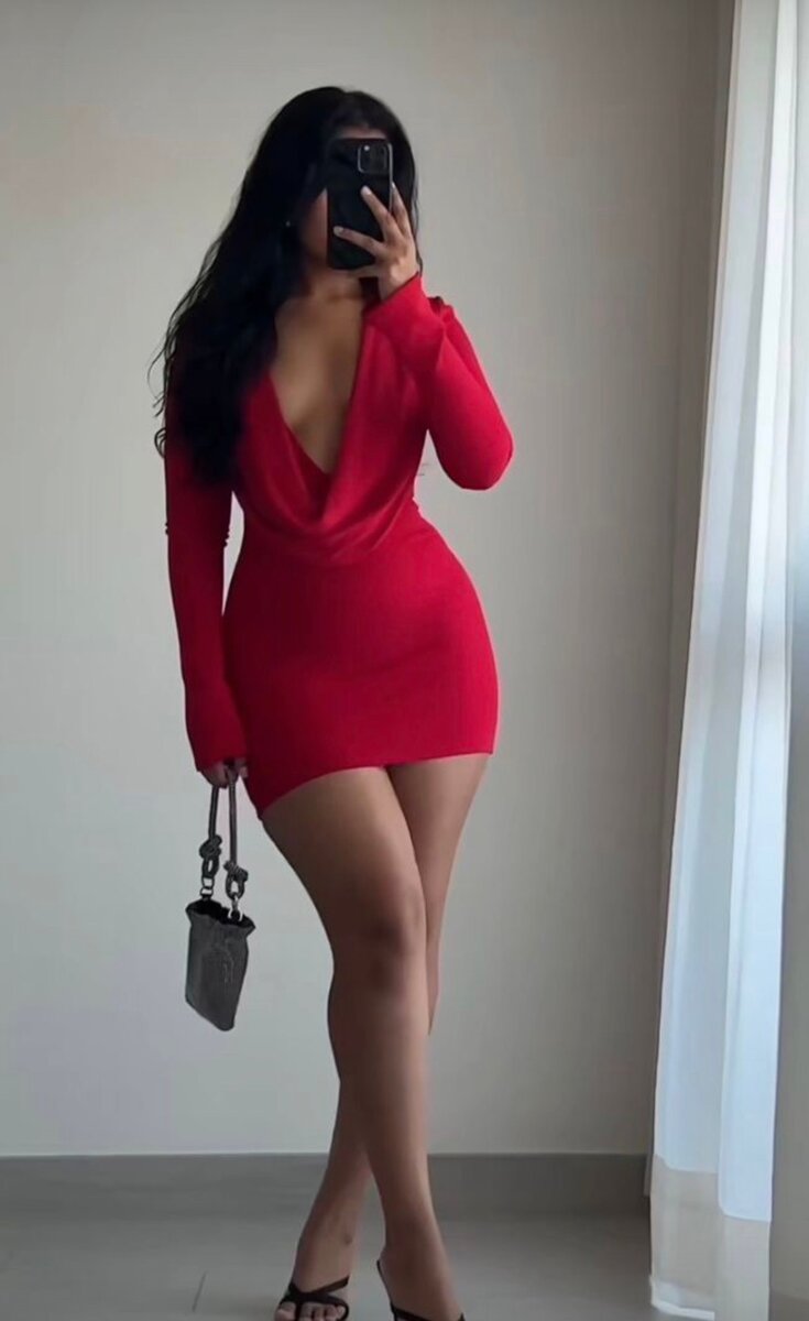 Cette robe rouge élégante et moulante est parfaite pour une soirée glamour. Conçue avec des manches longues et un décolleté plongeant, elle met en valeur votre silhouette avec style. Idéale pour les occasions spéciales ou une soirée entre amis, elle vous donnera une allure inoubliable.