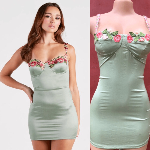 Découvrez cette élégante robe satinée verte ornée de broderies florales sophistiquées sur le décolleté. Parfaite pour une soirée ou un événement spécial, elle offre un ajustement flatteur et une touche de romantisme. Sa matière douce ajoute un charme intemporel, idéal pour celles qui souhaitent se démarquer avec style et raffinement.