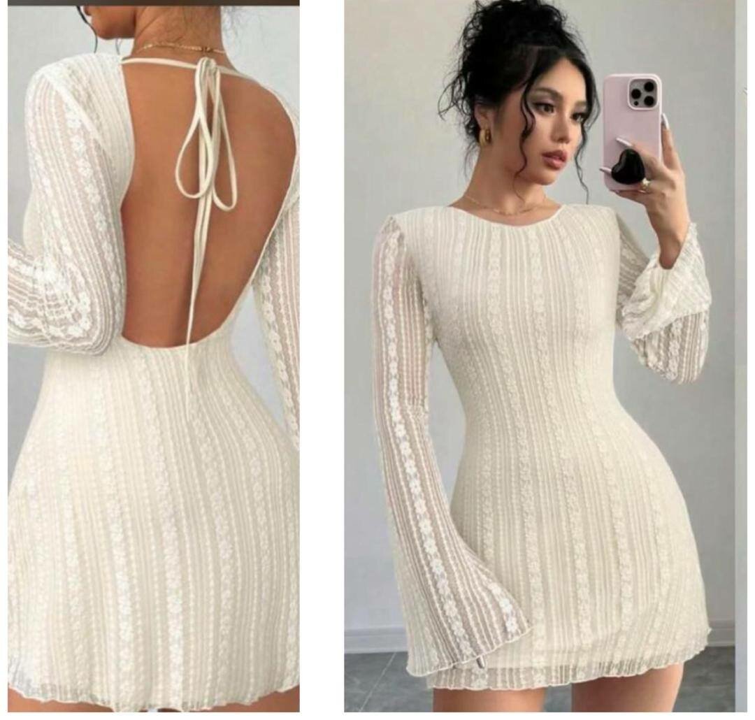 Découvrez cette élégante robe en dentelle avec un dos nu captivant. Parfaite pour une soirée chic, elle allie style et confort. Les manches longues ajoutent une touche de sophistication. Faites sensation à chaque occasion avec cette robe incontournable.