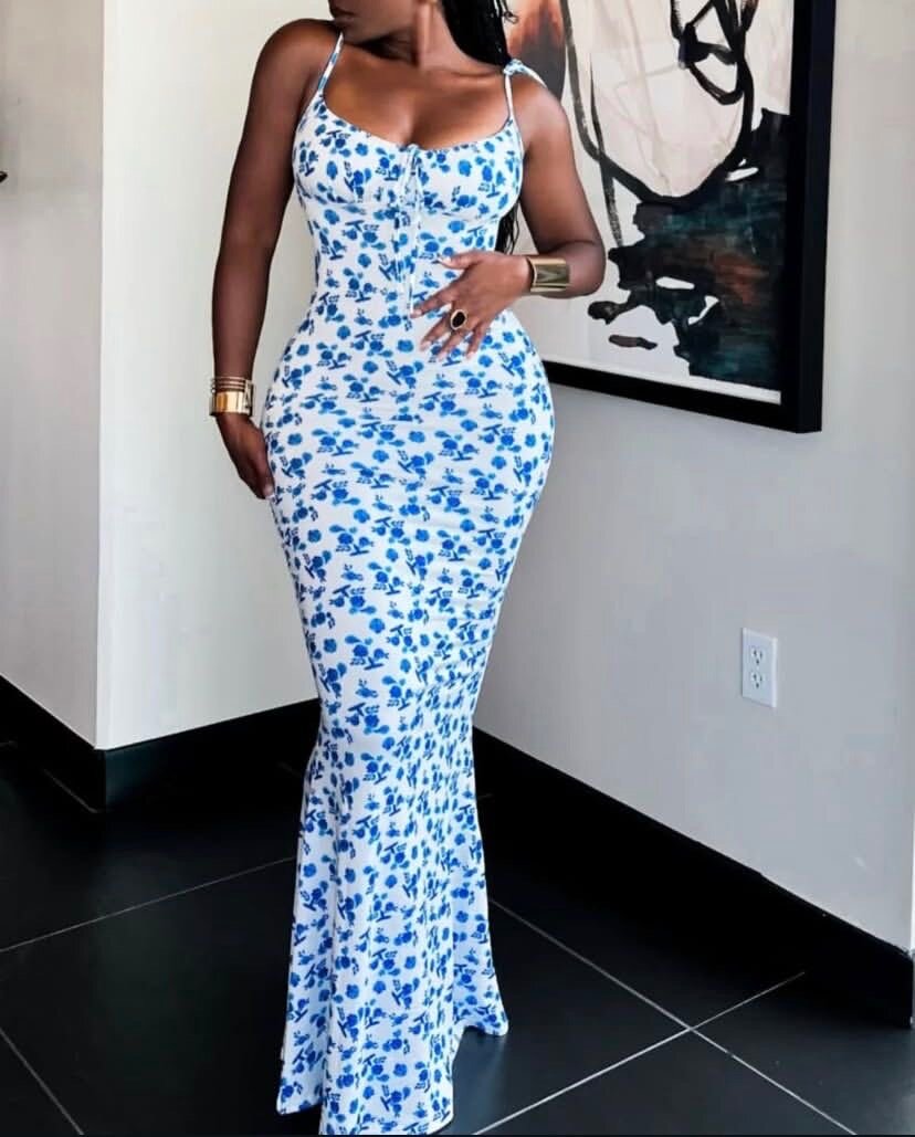 Élégante robe longue sirène à motif floral, parfait pour des soirées ou des événements spéciaux. Conçue pour accentuer la silhouette avec son design bustier et ses bretelles spaghetti. Un choix idéal pour les femmes cherchant à allier allure et confort.