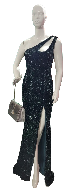 Brillez lors de vos soirées élégantes avec cette robe scintillante à paillettes. Dotée d'une coupe asymétrique et d'une fente audacieuse, elle allie glamour et sophistication. Parfaite pour les événements formels, cette robe saura attirer tous les regards et faire de vous la star de la soirée.