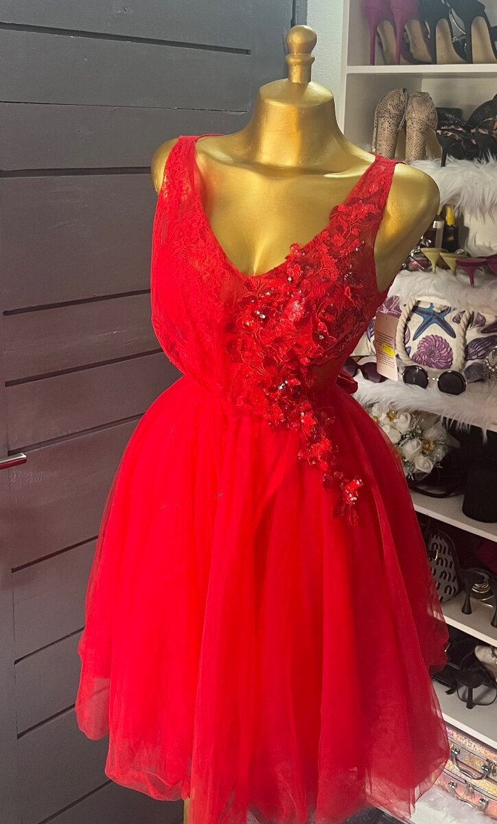 Éblouissez à votre prochain événement avec cette robe de soirée rouge en dentelle et tulle. Sa coupe élégante et ses détails floraux scintillants ajoutent une touche de glamour. Idéale pour des occasions spéciales comme les mariages ou les fêtes.