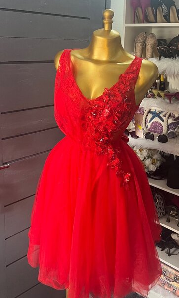 Robe soirée rouge dentelle brillante