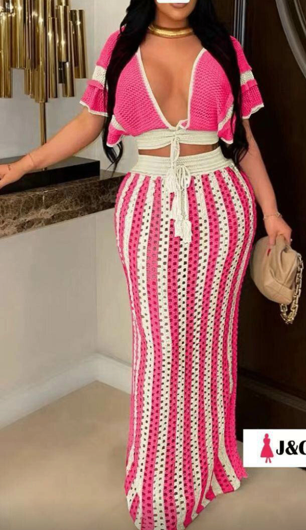 Ensemble crochet bohème rose