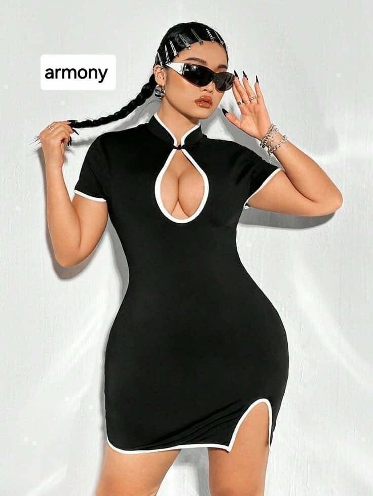 Optez pour cette robe noire évasée, élégante et tendance. Son design moderne avec une ouverture audacieuse et une finition contrastante met en valeur votre silhouette. Idéale pour une soirée chic ou un événement spécial. Confort et style réunis pour des moments inoubliables.