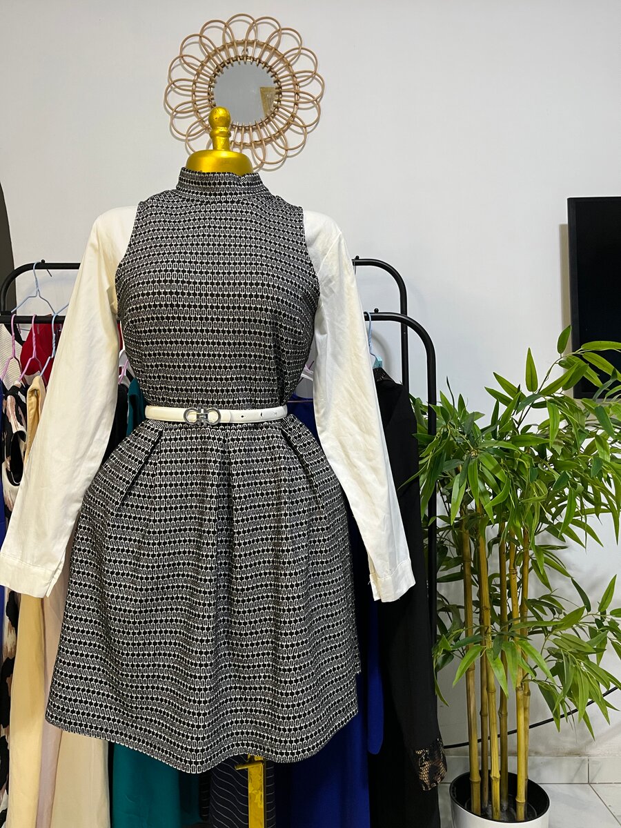 Cette robe élégante à motifs est idéale pour toute occasion. Fabriquée avec des matériaux de haute qualité, elle offre confort et style. Parfaite pour les événements spéciaux ou un look chic au quotidien. Complétez votre garde-robe avec cette pièce incontournable, facile à assortir grâce à sa ceinture discrète.