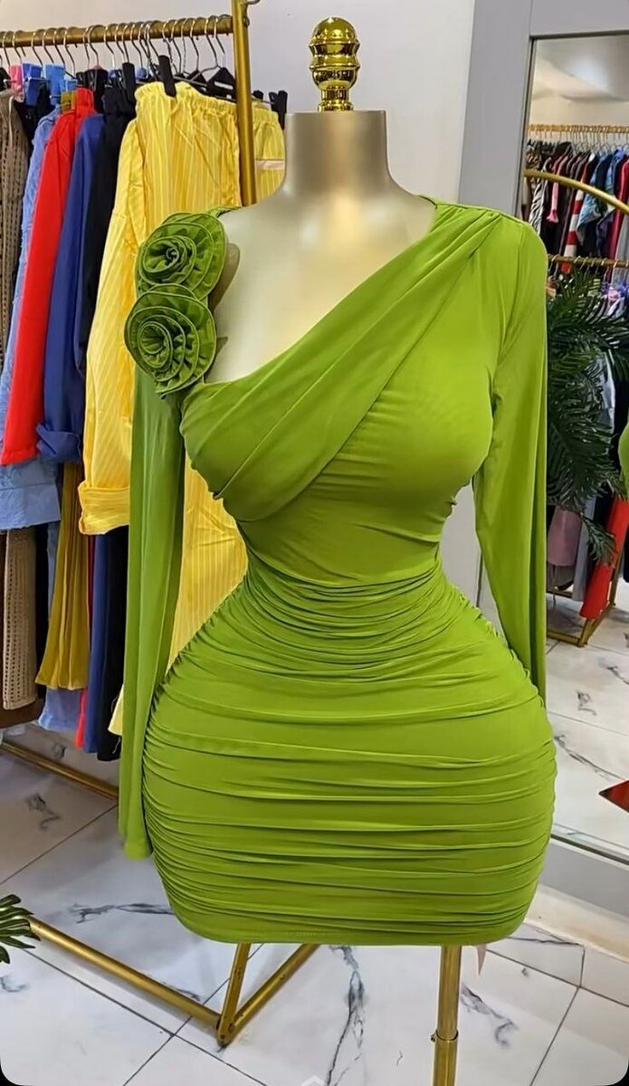 Découvrez cette robe verte asymétrique en soie, parfaite pour les occasions spéciales. Son design unique et son tissu luxueux vous feront briller.