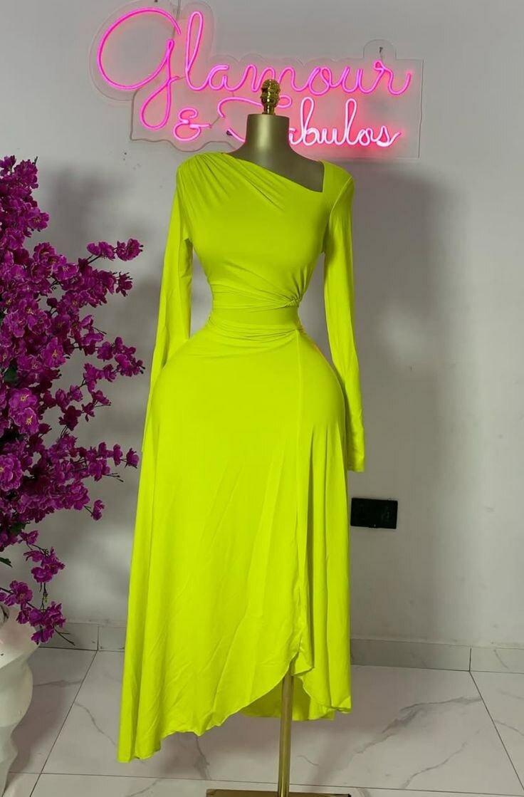 Élégante robe verte asymétrique à manches longues. Parfaite pour les occasions spéciales, cette robe met en valeur votre silhouette. Confortable et chic, elle est idéale pour les femmes qui aiment se démarquer.