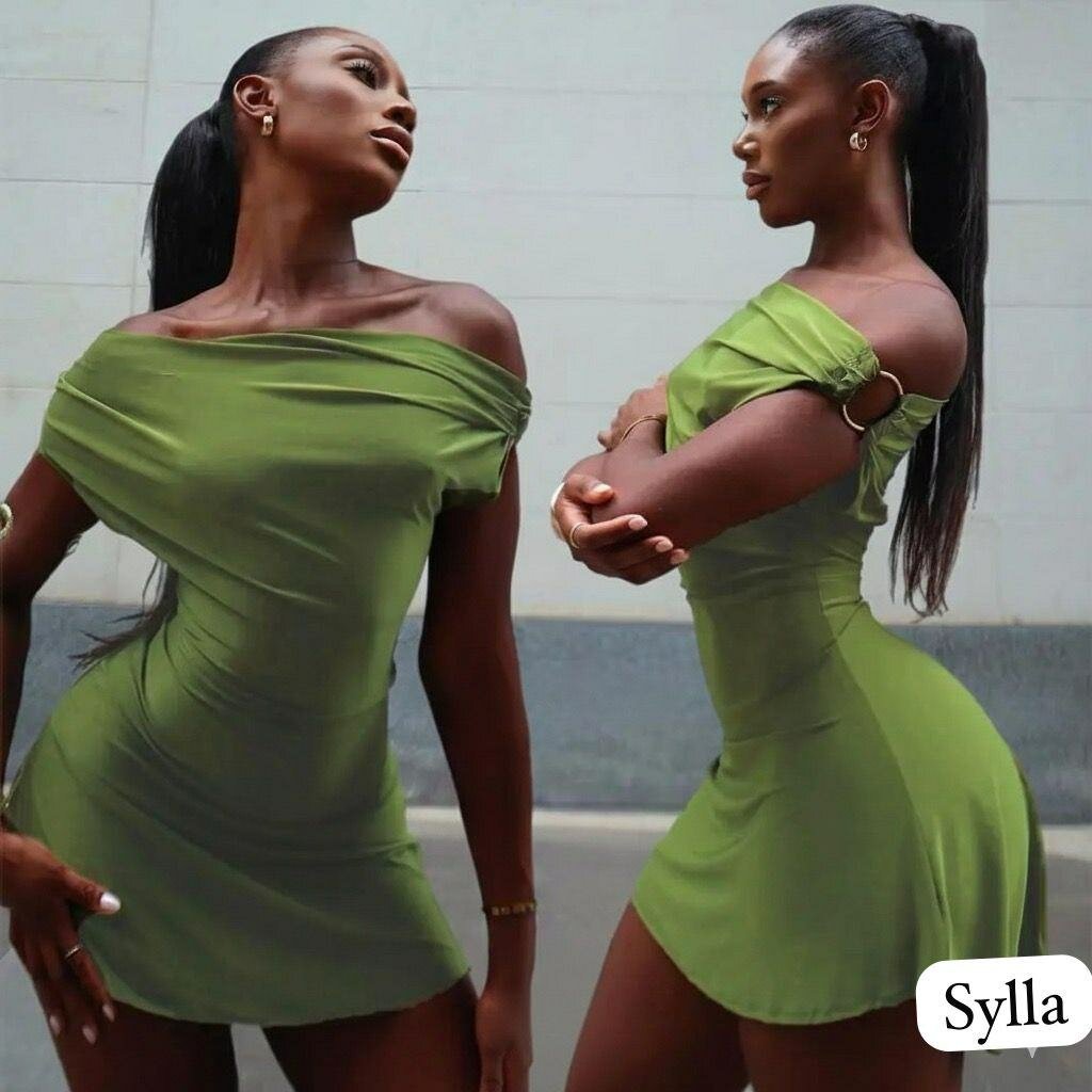 Découvrez cette robe verte élégante à épaules dénudées, idéale pour une soirée ou un événement spécial. Conçue pour sublimer votre silhouette, elle offre un look chic et moderne. Parfaite pour celles qui veulent se démarquer avec élégance et style.