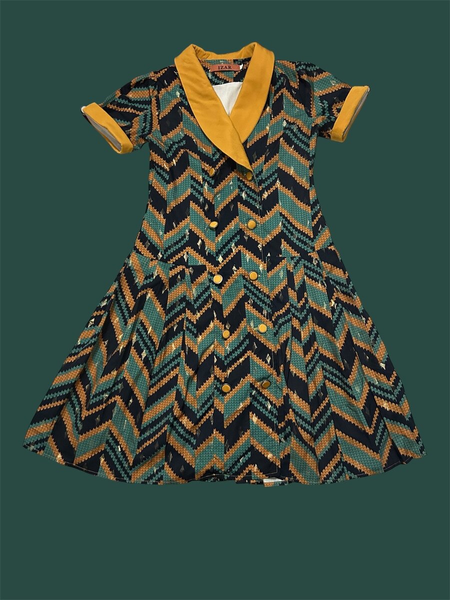 Découvrez cette élégante robe vintage à motifs rétro. Confectionnée avec des détails soignés, elle offre un style unique et intemporel grâce à ses motifs géométriques et ses touches de couleur vibrantes. Parfaite pour les sorties chics ou les événements spéciaux, elle est le choix idéal pour celles qui recherchent une élégance old-school avec une touche moderne.
