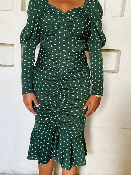 Robe Verte à Pois Élégante