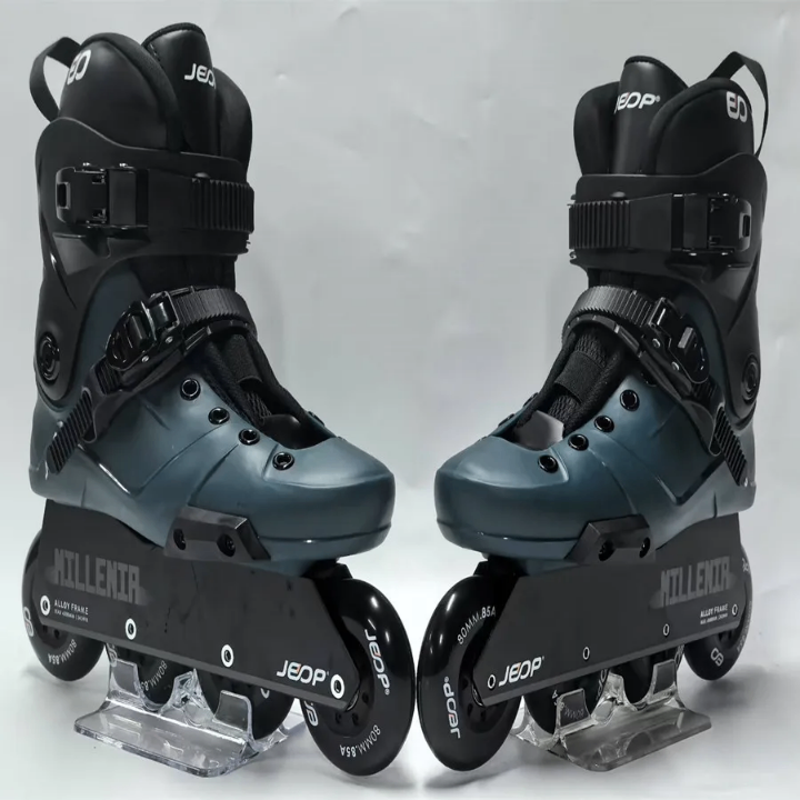 Découvrez les rollers en ligne Jeep Millenix, parfaits pour les amateurs de glisse. Conçus pour offrir une expérience de patinage fluide et confortable, ces rollers sont équipés de roues noires et d'une coque gris foncé. Idéal pour la ville ou les pistes de roller.