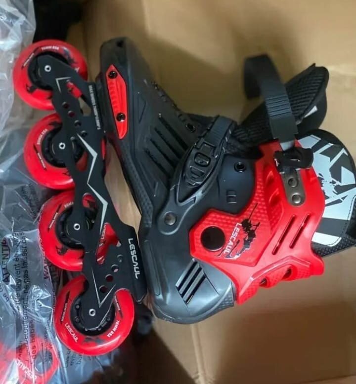 Découvrez ces rollers noirs et rouges élégants et robustes, parfaits pour les amateurs de sensations fortes. Dotés de roues résistantes et d'un système de fermeture sécurisé, ils offrent un confort et une stabilité incomparables. Idéal pour le sport ou les balades en plein air. Transformez votre expérience de patinage avec ce modèle incontournable!
