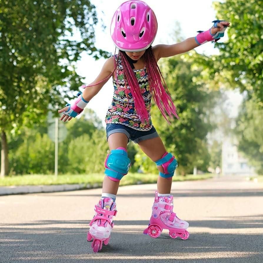 Ces rollers pour enfants sont livrés avec un ensemble complet de protections, y compris un casque, des genouillères et des coudières. Conçus pour le confort et la sécurité, ils sont parfaits pour les jeunes aventuriers. Faites rouler vos enfants avec confiance !