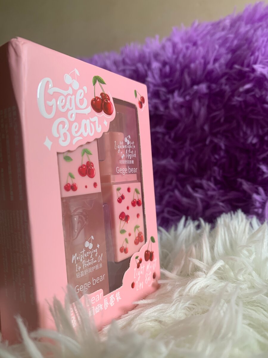 Ensemble de rouges à lèvres Gege Bear, longue tenue et hydratant. Parfait pour un maquillage quotidien ou occasions spéciales. Style élégant avec des motifs cerises.