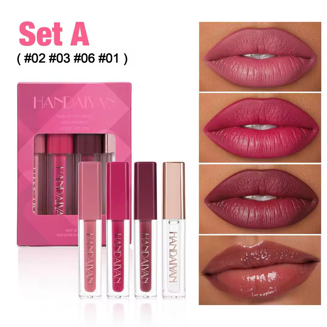 Découvrez les rouges à lèvres liquides Handaiyan, parfaits pour un look longue tenue et glamour. Offrez à vos lèvres une couleur intense grâce à ces ensembles variés. Anti-collant et richement pigmenté, chaque set comprend des teintes tendance. Idéal pour toutes les occasions, rehaussez votre beauté naturelle avec Handaiyan.
