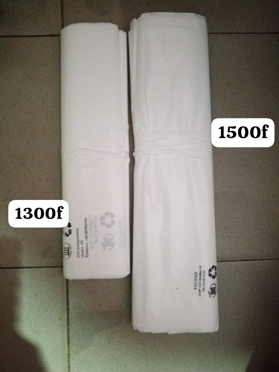 Pratiques rouleaux de sacs en plastique pour la maison ou le bureau. Idéal pour l'emballage, ces sacs sont résistants et durables. Disponibles en deux tailles, parfaits pour s'adapter à tous vos besoins de stockage. Contient 50 PCS. Grand format a 1500 et moyen format a 1300f. Sachet tout blanc pour emballer vos colis