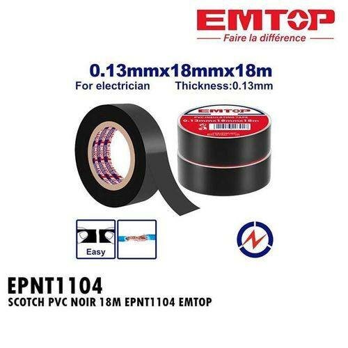 Ruban isolant en PVC Emtop, idéal pour électriciens. Dimensions 0,13mm x 18mm x 18m, parfait pour une isolation fiable et durable. Facile à utiliser, devient un atout essentiel pour vos travaux électriques.