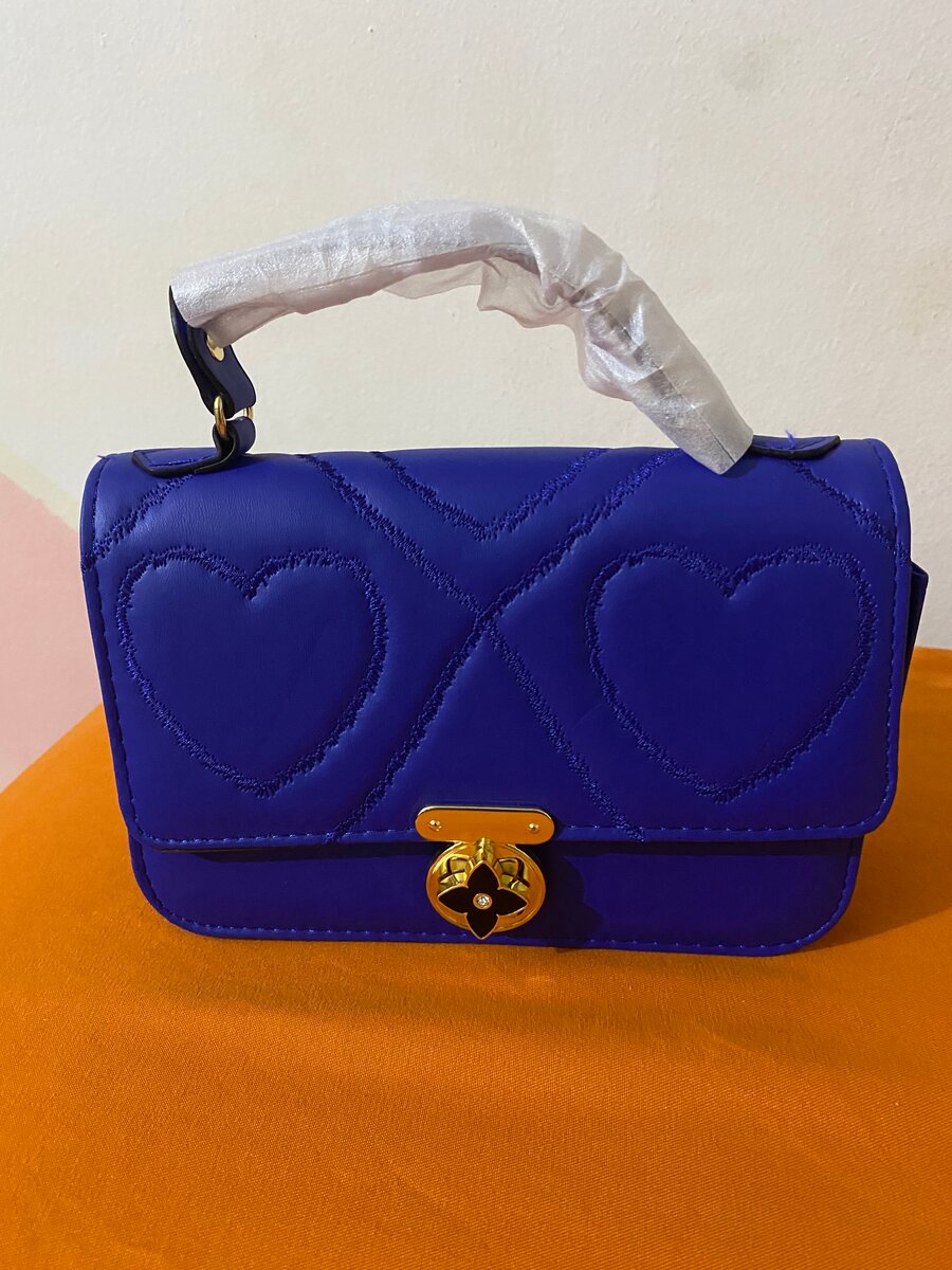 Ce sac à bandoulière bleu stylé est parfait pour ajouter une touche de fun à votre look quotidien. Avec son design en forme de cœurs et sa couleur vibrante, il est à la fois chic et ludique, idéal pour les sorties et les occasions spéciales. La fermeture dorée ajoute une élégance supplémentaire. Associez-le facilement à diverses tenues pour un look moderne et tendance.