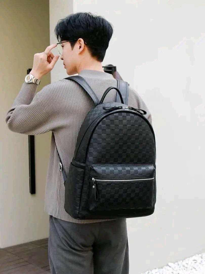 Découvrez notre sac à dos en cuir noir, parfait pour allier style et praticité au quotidien. Doté d'un design élégant à carreaux, ce sac est idéal pour le travail, les voyages ou les sorties en ville. Avec des poches spacieuses et une finition de haute qualité, il offre non seulement un look moderne mais aussi un confort inégalé. Parfait pour les hommes en déplacement qui recherchent une combinaison de mode et de fonction.