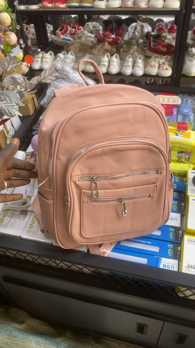 Sac à dos élégant et pratique, idéal pour le travail, l'école ou les voyages. Fabriqué en cuir rose pâle, avec plusieurs compartiments et fermetures éclair.