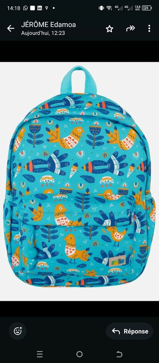 Sac à dos enfant motif oiseaux