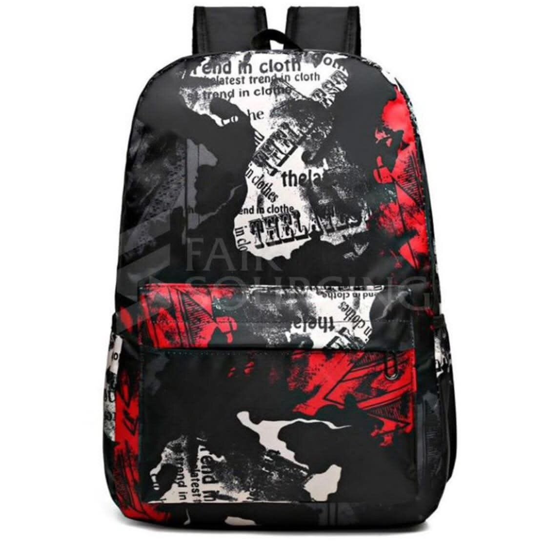 Découvrez ce sac à dos stylé avec motifs graffiti, parfait pour les étudiants et les créatifs. Avec son design audacieux en rouge et noir, il se distingue par son matériau durable et ses compartiments spacieux pour tous vos essentiels.