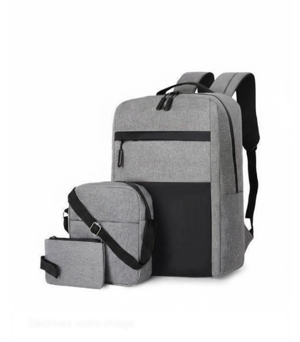 Sac à dos gris multifonctionnel pour ordinateur portable avec compartiments supplémentaires. Conçu pour les étudiants et les professionnels, il est équipé de plusieurs poches pour un rangement organisé. Léger et durable.