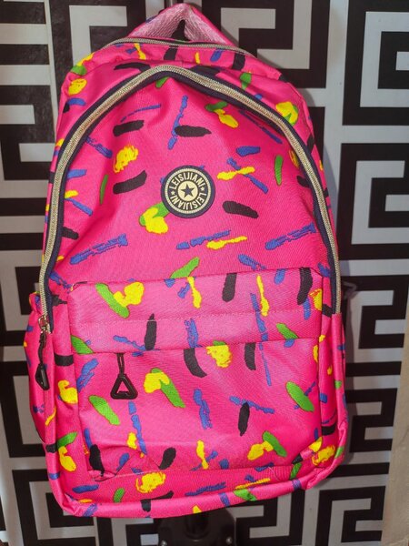 Sac à dos tendance avec imprimé géométrique coloré, idéal pour l'école ou le quotidien. Avec plusieurs compartiments et fermetures éclair solides, c'est un choix pratique et stylé.