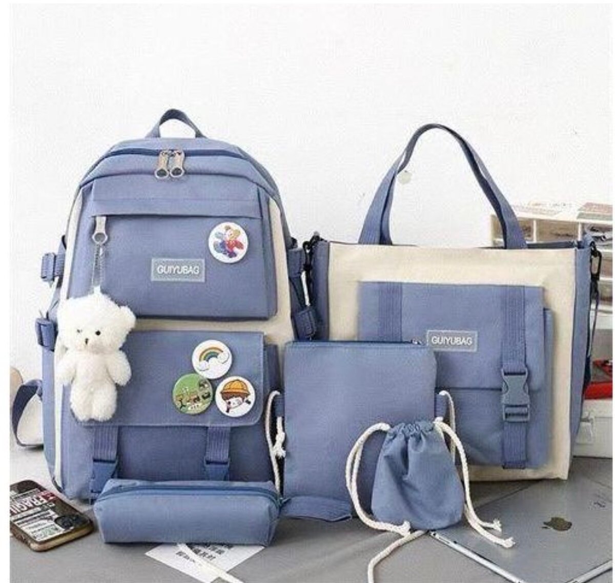 Explorez le style avec ce set de sac à dos 6 pièces, idéal pour l'école ou les sorties. Inclus un sac à dos spacieux avec porte-clés adorable, un sac à bandoulière stylé, une trousse, et plus encore. Parfait pour un usage quotidien et pour organiser vos affaires avec élégance.