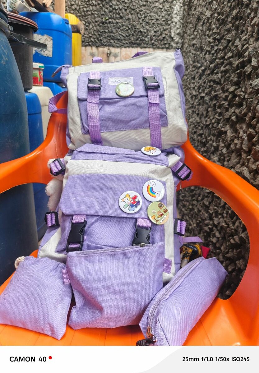Explorez votre style avec ce sac à dos violet, idéal pour l'école ou les sorties en ville. Doté de nombreuses poches, il allie fonctionnalité et esthétique avec ses badges colorés. Parfait pour les étudiants et les aventuriers urbains.