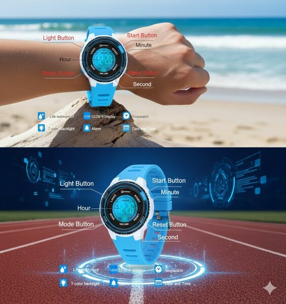 Montre numérique étanche enfants