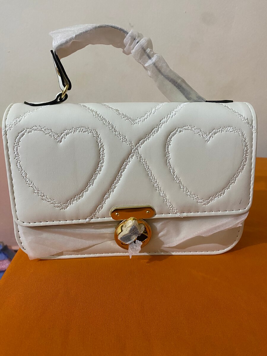 Découvrez ce sac à main élégant en blanc, orné de délicats motifs en forme de cœur. Parfait pour toute occasion, ce sac offre un style romantique et sophistiqué. Sa taille compacte est idéale pour transporter vos essentiels quotidiens. Faites une déclaration de mode avec ce merveilleux accessoire !