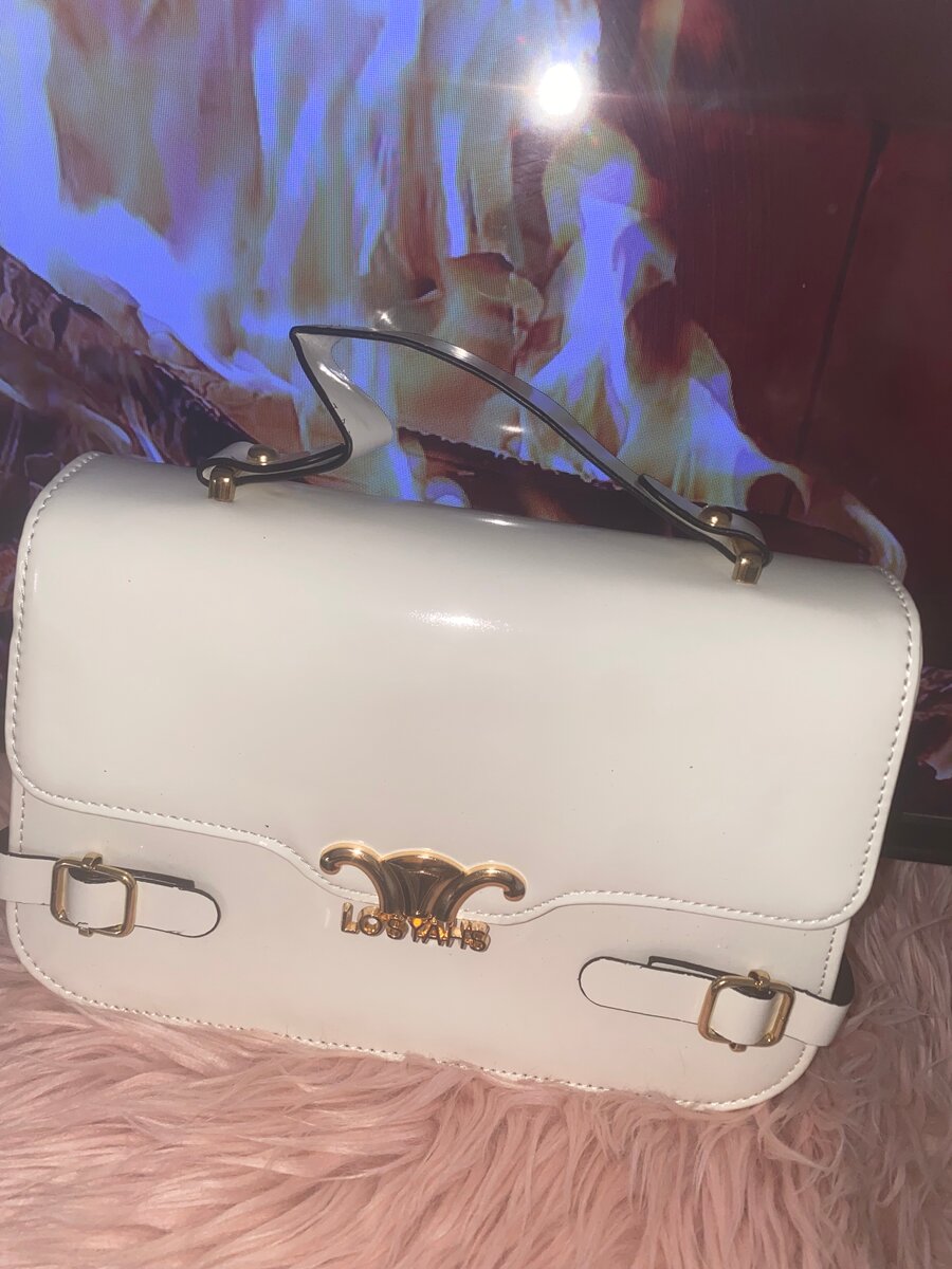 Élégant sac à main blanc, idéal pour une sortie chic ou un usage quotidien. Orné de détails dorés, il ajoute une touche de glamour à votre style. Compact et pratique, ce sac est parfait pour toutes vos affaires essentielles. Un choix parfait pour compléter votre tenue avec élégance.