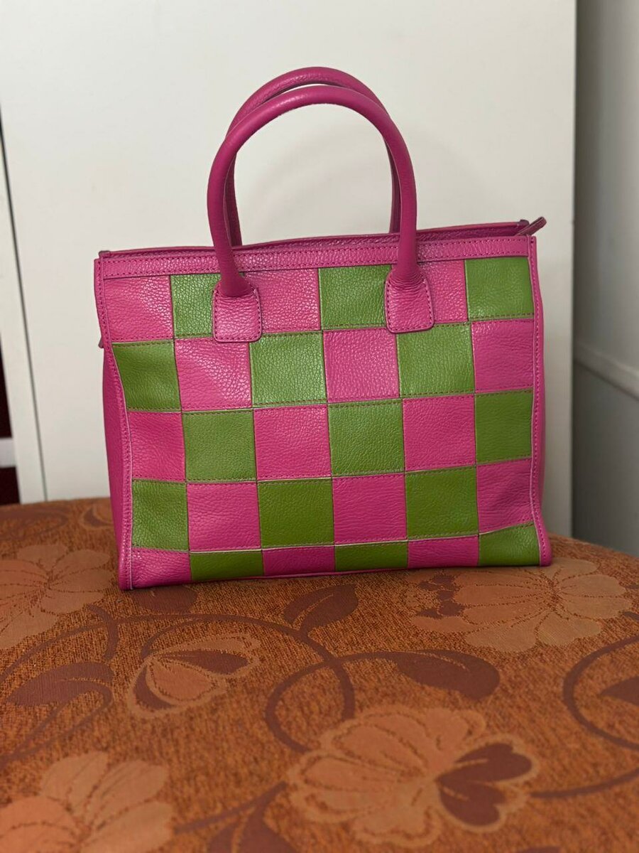 Découvrez ce sac à main élégant avec un design à carreaux rose et vert vif. Parfait pour ajouter une touche de couleur à vos tenues quotidiennes. Fabriqué en cuir de haute qualité, il offre une durabilité exceptionnelle. Idéal pour le shopping, le travail ou une sortie entre amis. Sa taille généreuse permet de ranger tous vos essentiels. Un choix pratique et tendance pour tous les moments.