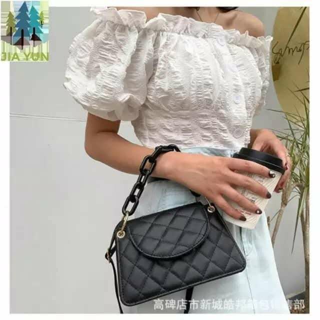 Ajoutez une touche d'élégance à votre tenue avec ce sac à main noir doté d'une chaîne robuste. Parfait pour les sorties ou les occasions spéciales, il combine style et praticité pour la femme moderne.