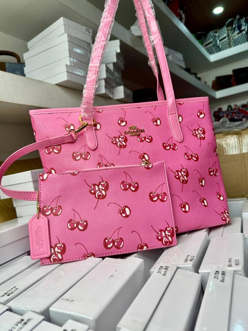 Découvrez ce sac à main rose vibrant, orné de motifs cerises ludiques. Parfait pour ajouter une touche de couleur à votre tenue, il est accompagné d'une pochette coordonnée pour plus de fonctionnalité. Idéal pour une utilisation quotidienne ou une sortie entre amies, ce sac allie style et praticité. Fabriqué avec soin pour les amateurs de mode audacieux.