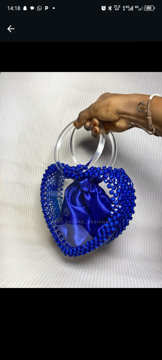 Ajoutez une touche d'élégance avec ce sac à main en forme de cœur bleu. Conçu avec des poignées transparentes robustes et une pochette intérieure, il est parfait pour des soirées ou événements spéciaux. Exprimez votre style unique avec cet accessoire incontournable.