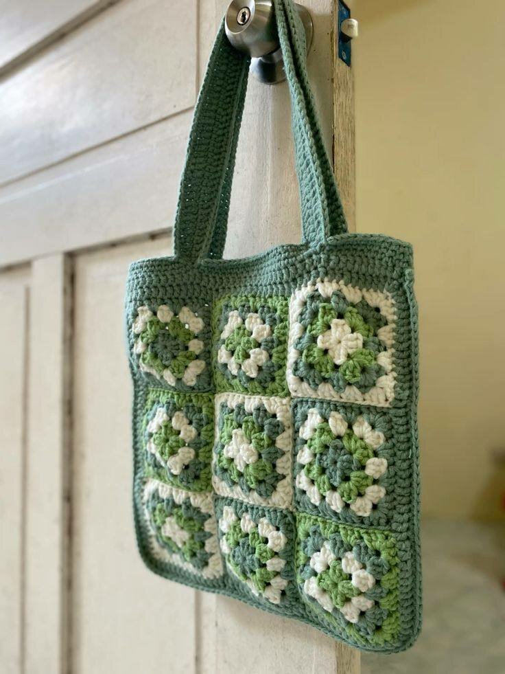 Découvrez ce sac à main crocheté fait main, parfait pour ajouter une touche d'artisanat à votre tenue. Idéal pour les sorties quotidiennes, il est spacieux et stylé. Fabriqué avec des matériaux durables et dans des tons verts apaisants. Un accessoire incontournable pour toutes les saisons!