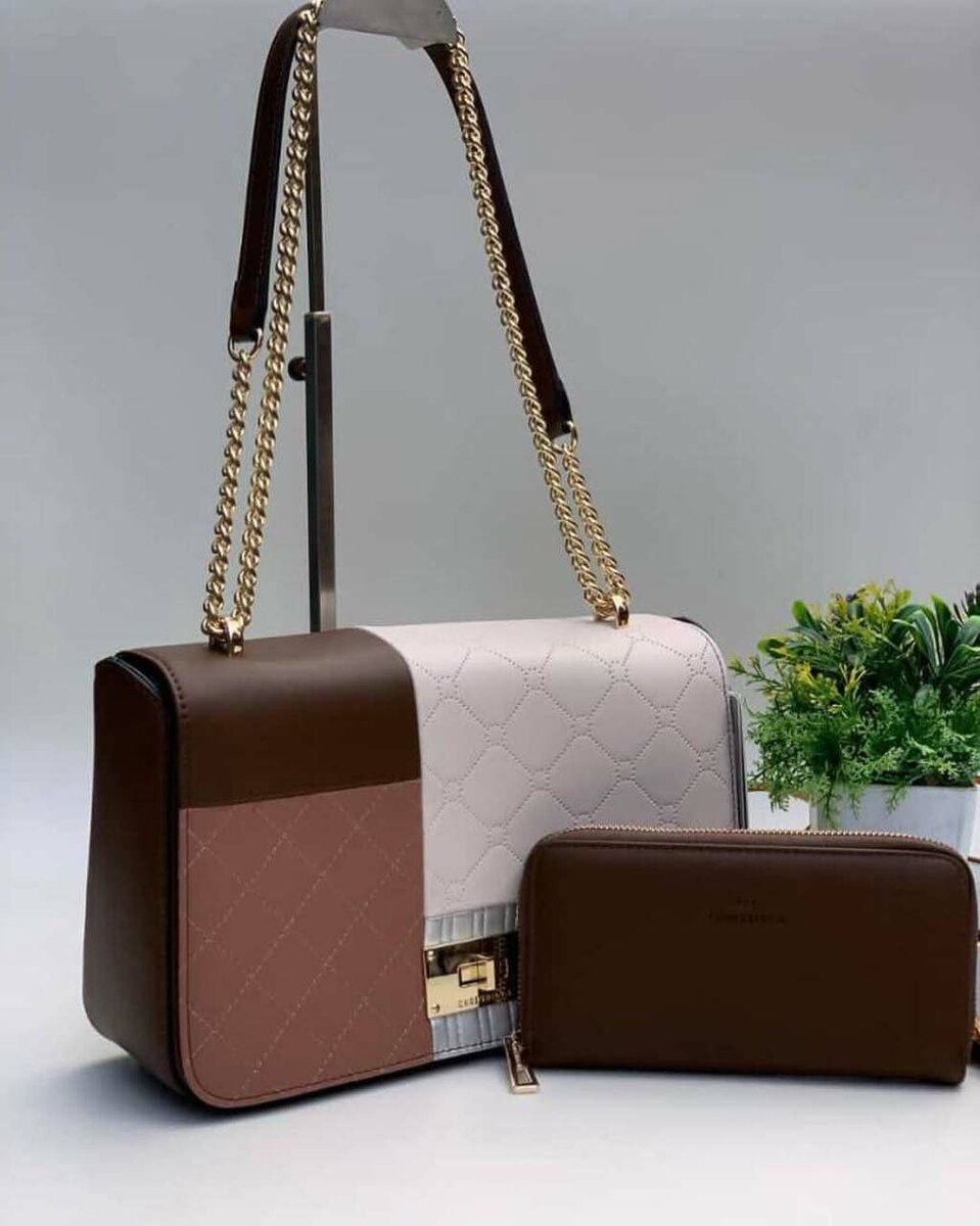 Sac à main ALDO bleu et blanc avec chaîne dorée