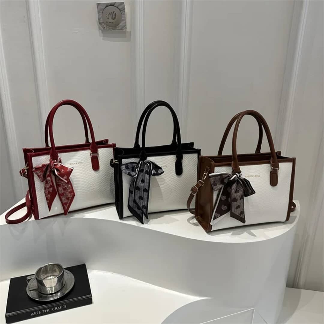 Découvrez notre sac à main en cuir avec écharpe décorative, idéal pour sublimer votre style. Parfait pour le bureau et les sorties, spacieux et chic.