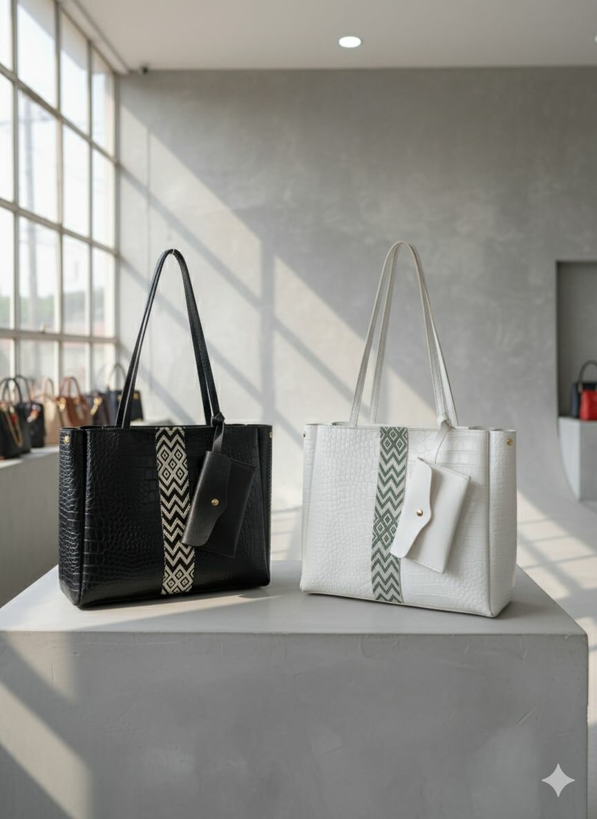 Découvrez le sac à main en cuir élégant, parfait pour rehausser votre tenue quotidienne. Avec son design moderne et sa pochette assortie, il est idéal pour le bureau ou une sortie en ville. Disponible en noir et blanc, il allie style et praticité. Choisissez-le pour un look chic et sophistiqué.