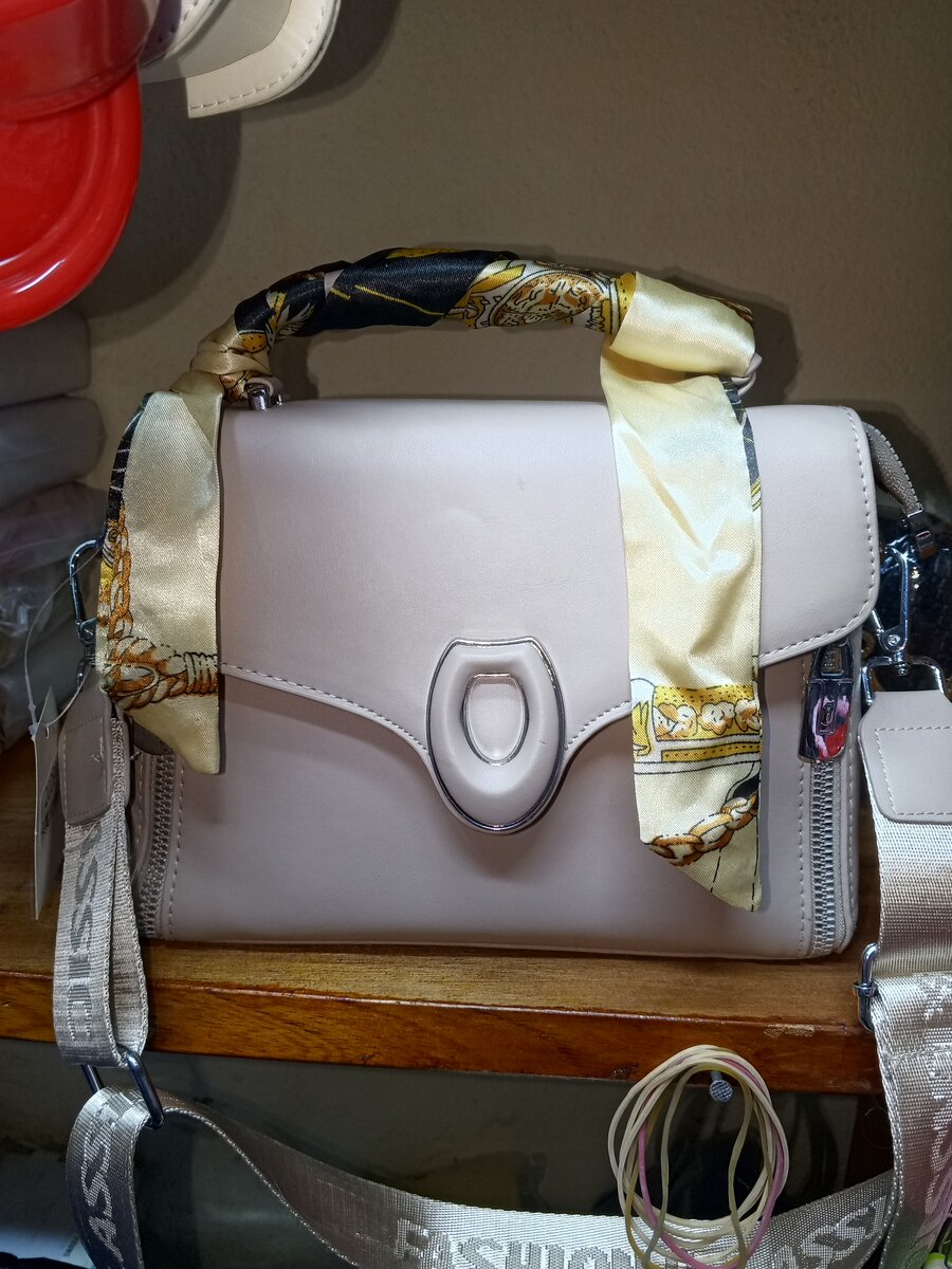 Découvrez ce sac à main sophistiqué pour femme, parfait pour toute occasion. Fabriqué avec des matériaux de haute qualité, il est agrémenté d'une jolie bandoulière amovible et d'une poignée embellie d'un foulard. Idéal pour les sorties en ville ou au travail.