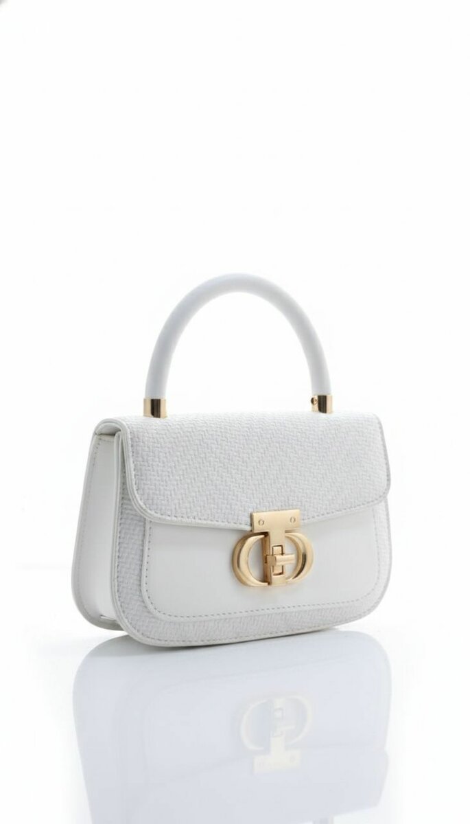 Sac à main en cuir blanc avec poignée dorée