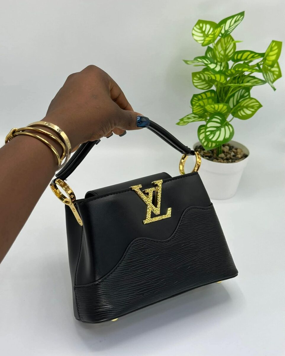Découvrez ce sac à main en cuir noir d'exception, parfait pour toutes vos occasions. Son design raffiné et ses finitions dorées ajoutent une touche de luxe à votre tenue. Idéal pour les événements formels ou une sortie décontractée.